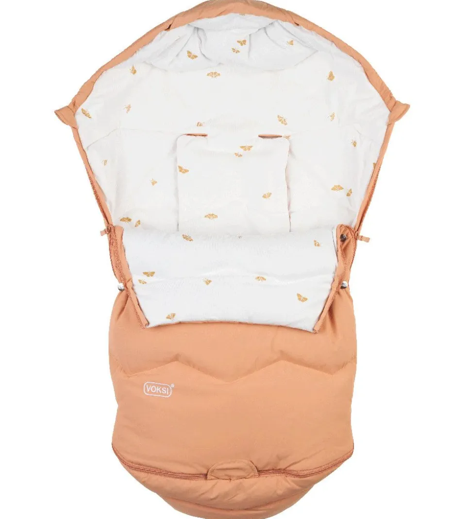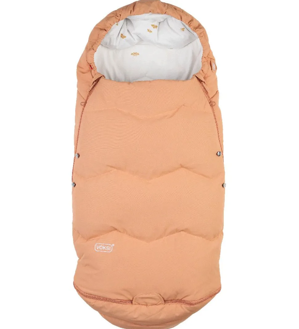 Voksiposen har et blødt, fastvævet bomuldsfor, og i den øverste del er den vatteret med lune dun og fjer. Fodenden har et vand- og smudsavisende for.