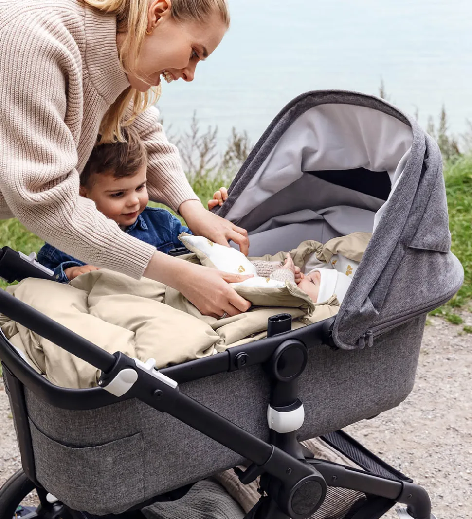 I toppen kan køreposen strammes ind med en elastiksnøre, der er gemt i en lille lomme med velcro. I ryggen er der åbninger til en barnevognssele, og hullerne er dækket af flapper, der beskytter mod kulde. På ryggen er der desuden striber af silikone, som sikrer, at køreposen ikke skrider i klapvognen.