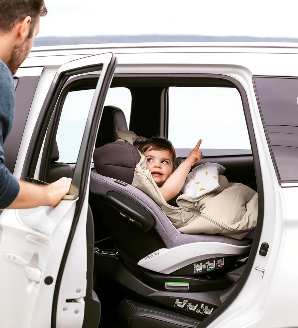 Voksi køreposen åbnes i siderne med en lynlås i hver side, der kan åbnes enten fra oven eller fra neden, så det er let at komme ind til barnet. Man kan lyne forstykket en smule ned og fæstne hjørnerne til posens sider med elastikløkker omkring en metalknap, så køreposen bliver lidt mere åben, og denne funktion har to indstillinger. Hele forstykket kan lynes helt af og bruges til f.eks. et siddeunderlag.
