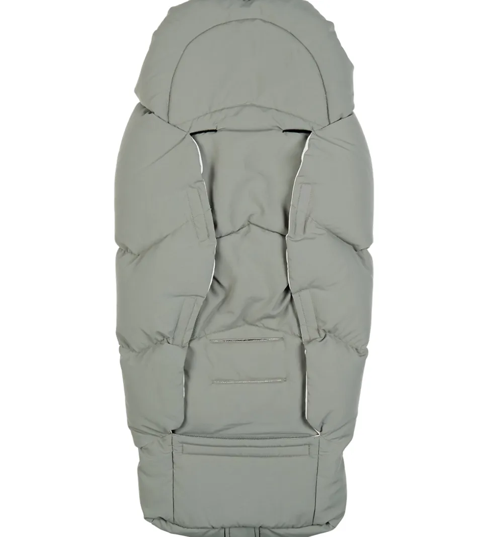 I ryggen er der en stor åbning, som lukkes til med velcro. Åbningen kan justeres, så den passer til en barnevognssele, eller så det er nemt at spænde barnet fast i selerne på klapvognen, autostolen eller cykeltraileren, uden at barnet skal ud af den lune kørepose. Køreposen er designet til at passe til de fleste barnevgne og klapvogne med en 5-punktsele.