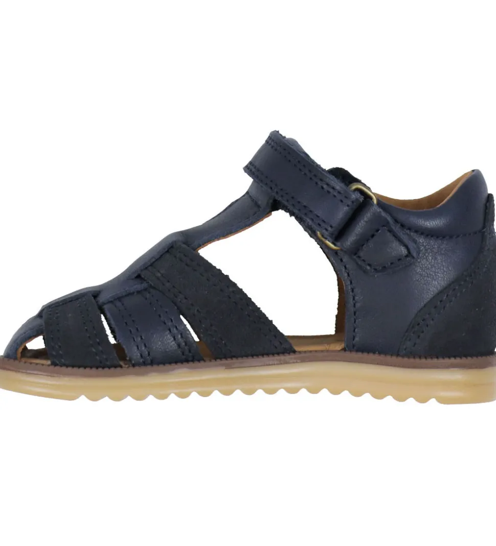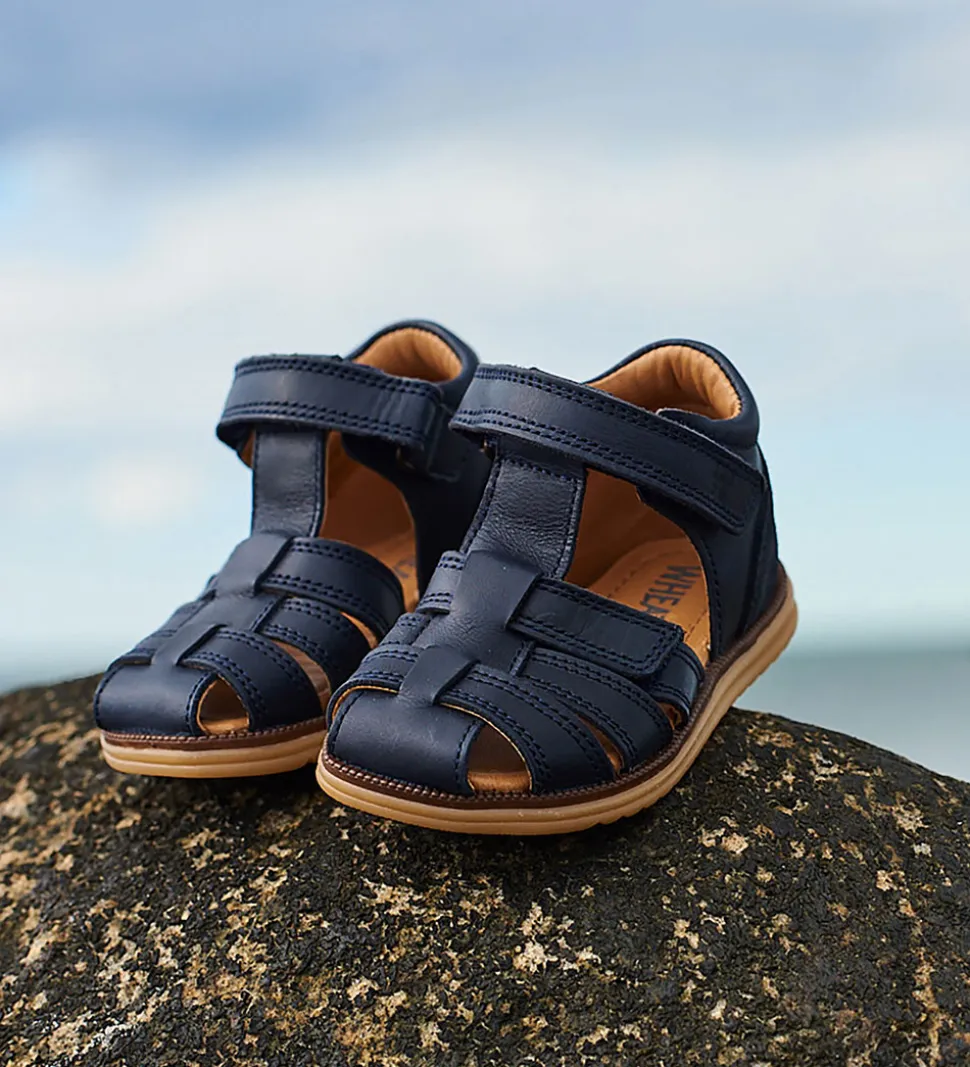 Lækre Wheat sandaler i navyblå skind med detaljer i ruskind.