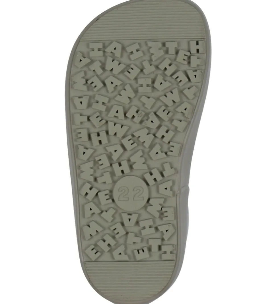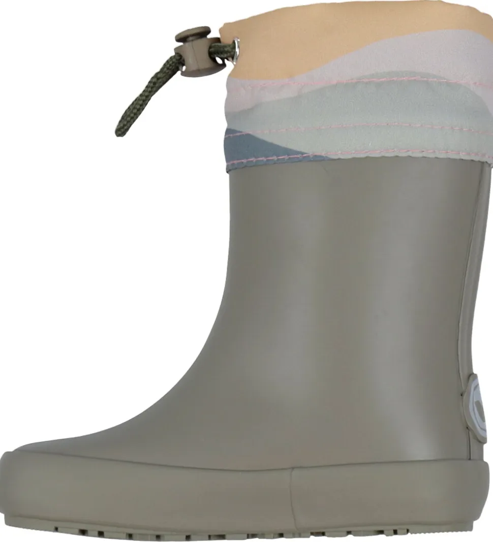 Smarte Wheat termostøvler i grågrøn med striber øverst på skaftet i blå, grønne og orange nuancer. Termostøvlerne har et reflekslogo på hælene.