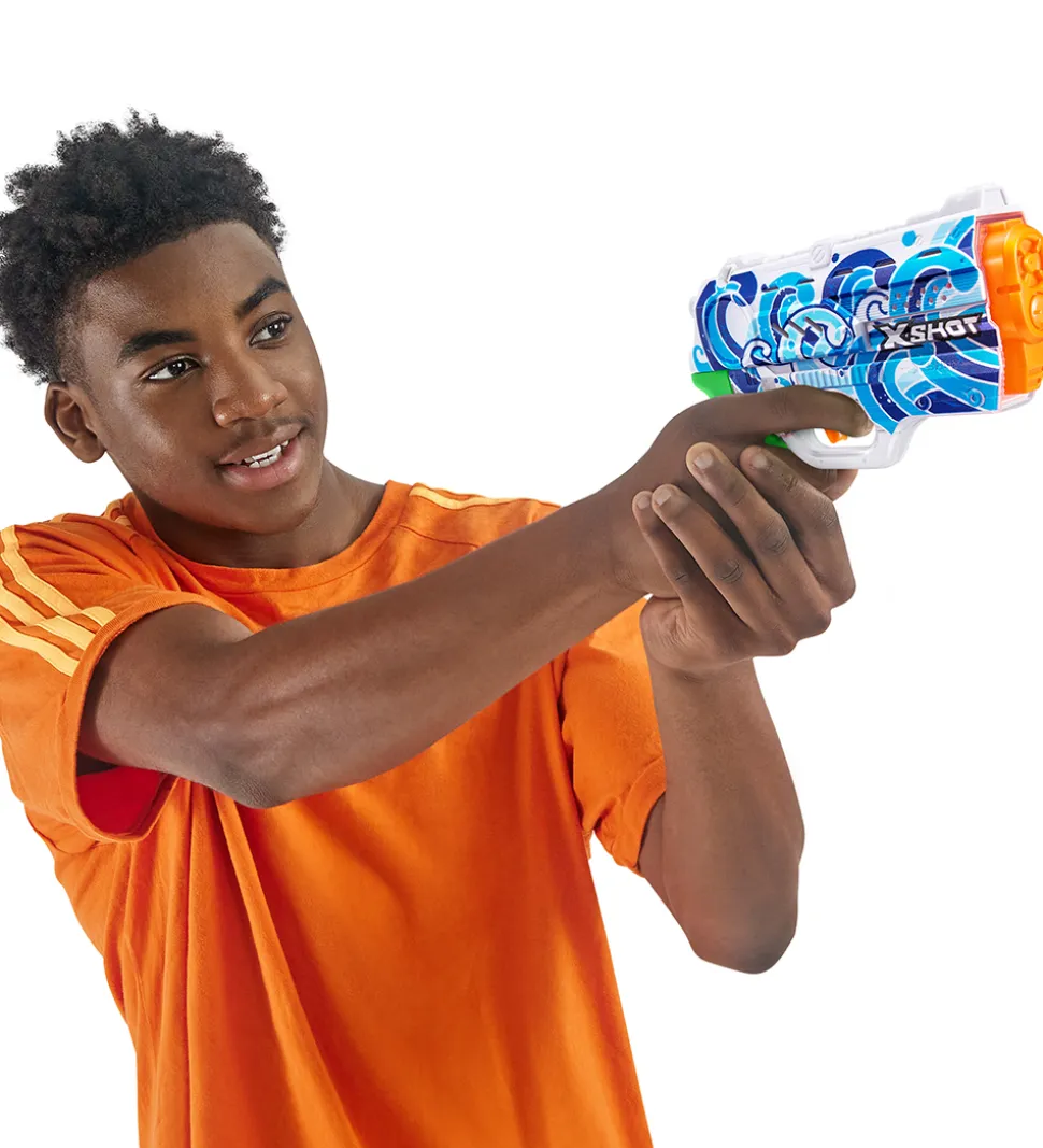 X-SHOT vandpistolen er perfekt til hæsblæsende og afkølende vandkamp, da den har Fast Fill-funktion, så den kan blive fyldt med vand på 1 sekund. Vandpistolen sprøjter vand op til 9 meter.